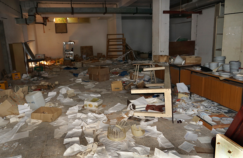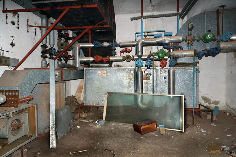 Ist insgesamt allerdings auch nicht mehr viel zu sehen, bis auf den Waschtisch und den Sozialisten-Stern. Beides war ganz oben im Dachgeschoss.