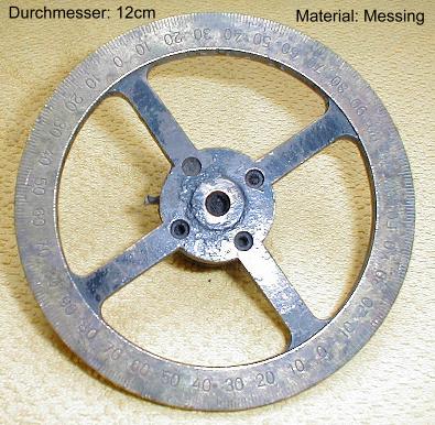 ich habe mal vor längeren dieses Messingdrehrad mit Gradeinteiluung an einer Rückzugsstraße mit anderen Wehrmachtsfunden gefunden. Wer hat ne Ahnung wo dieses Einstellrad montiert war? War es an einem opitschen Gerät oder Waffe angebaut? Durchmesser ist 12 cm, die zahlen waren rot eingefärbt, Rest des Messings schwarz. Wer hat eine Idee bzw. sogar ein Bild wo das Teil saß?