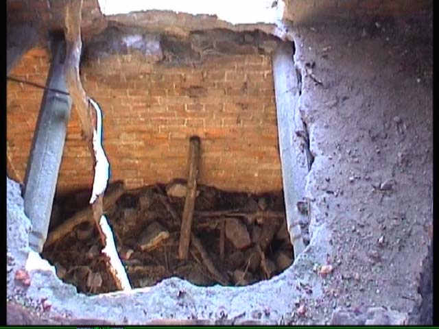 In dem Turm gibts es eine zweite nicht tiefe Etage. (Fot.6 - technischer Kanal?) Weiter hinein geht ein ca. 10 m. hoher und schmaler Kanal (Fot.3)