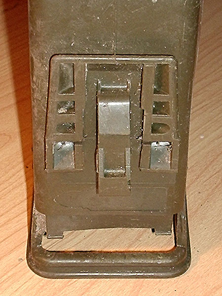 Also wenn Du das Teil umdrehst ähnelt es stark einer Gurtkiste für 5,56mm NATO Standard für ein SAW oder so...