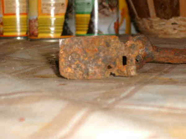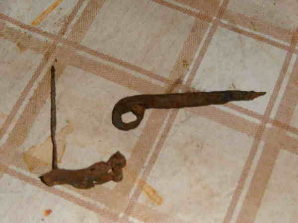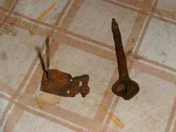 Hi, sieht aus wie die Überreste einer Vermoderten Tür oder Karre, einem schweren Möbelteil oder ähnlich. Vieleicht gabs da mal ein Holzhaus.