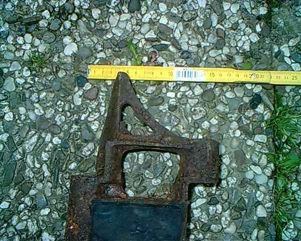 hab am Dienstag ein Kettenglied gefunden.War ein Bodenfund.die Länge beträgt etwa 15cm und die breite 44cm.Das ganze wiegt zwischen 7 und 9 K.Begleitfunde: 2 verrostete Mütter.Noch zu sagen ist das das Kettenteil neben einem breiterem kaum noch wahrnehmbaren Weg lag.