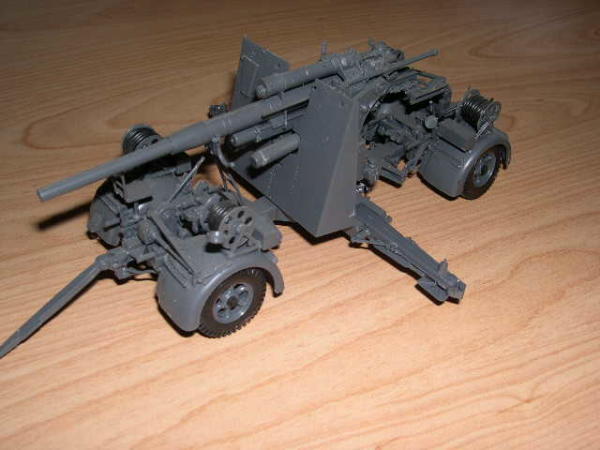 Wurde das Geschütz " abgeprotzt", stand es auf vier Schenkeln, welche immer 90 Grad zueinander versetzt waren. Das war bei schnellem Stellungswechsel aber ziemlich gefährlich und so konnte das Geschütz auch an den beiden Anhängern montiert bleiben und man stützte nur auf den Seiten ab.