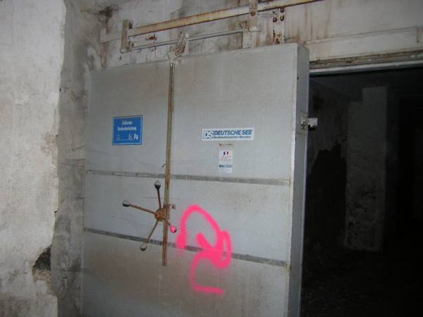 Wenn der Fundort nicht der Bunker wär hätt ich angenommen das es ein Teil einer Drehbank o.ä. ist.Könnte es ein Türverschluss eines Panzerschrankes (DDR) gewesen sein?