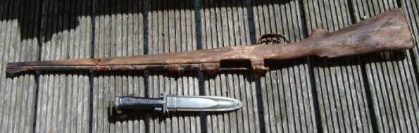 Die Patronen und das Gewehr waren ca. 10m voneinander getrennt in ca. 40 - 50 cm Tiefe vergraben - trotz intensiven absuchens kam das Schloß nicht ans Tageslicht.