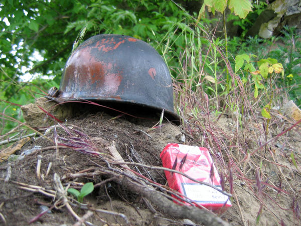 Plötzlich sprang er uns an, der Kinderhelm auf dem Foto. Einfach so aus der Wiese, wo er rumlag.