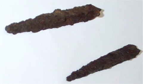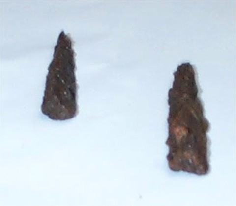 Nun zu den Spitzten: Sie sind ca 7,4 cm und 8 cm lang und und wiegen 21 und 24 gr. Beide sind dreischenklig und haben einen kleinen Knopf auf einer Kante.