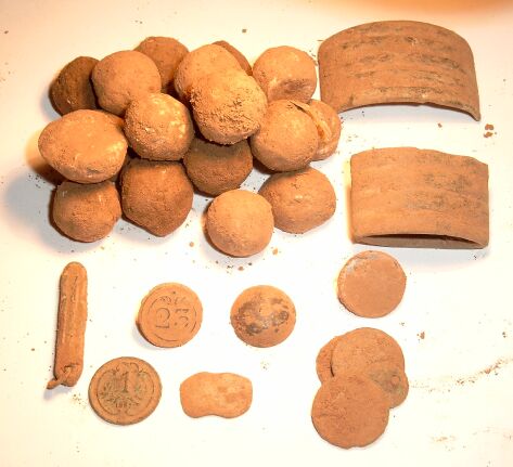 Gesammelte Werke vom Franzosenacker von heute. Den Knopf vom Soldat Nummer 23 hatte ich noch nicht, fast alle Münzen bis auf den Heller aus Österreich sind mal wieder Reichspfennige. Kann jemand was mit den Teilen rechts oben anfangen, auf der Vorderseite mit Rillen, auf der Rückseite glatt?
