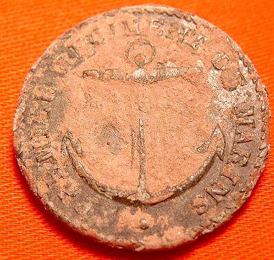 Ich war heute nachmittag noch mal kurz auf dem Acker, mit dabei war dieses nette Marineknöpflein. Der ist mir bis jetzt noch nicht untergekommen. Frankreich 1813, in der Öse steckt noch der Zwirn. Ich lese da „PREMIER REGIMENT DE MARINS“. Weiß jemand mehr zu der Einheit?