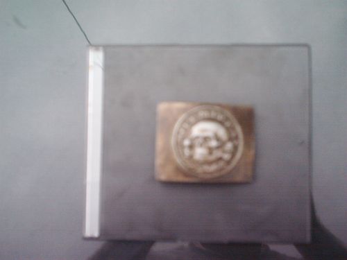 Vorne drauf ist nen Totenkopft ( genau der gleiche wie von der Division Totenkopf habe nen Vergleichsstück da ) und dann drüber Gott mit Uns.