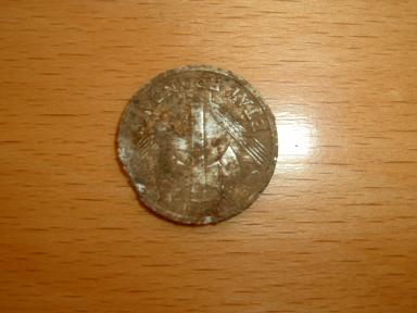 Die Alu-Münze fand ich in einem ebenfalls plattgemachten Waldstreifen in ca 15cm Tiefe.
