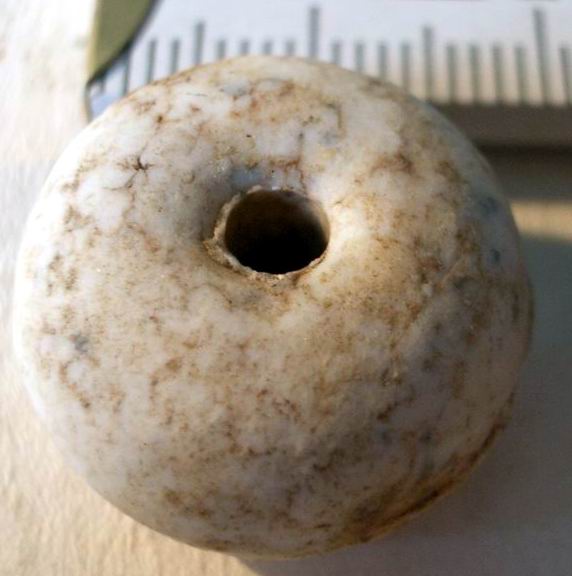 Meine natürlich die Kugel mit dem Loch. Ist auf jeden Fall metallisch. Vom Gewicht würde ich Blei sagen. Von außen ist eine Art Kreide oder Stein.