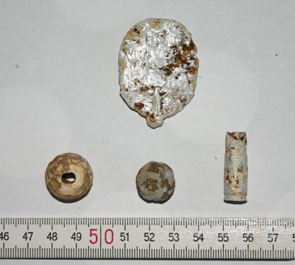 Außerdem noch eine Musketenkugel und eine alte Platzpatrone.