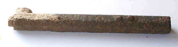 Vorderlader kann man als Bausatz kaufen, z. B. bei Franconia. Und der Lauf sieht bei den Bausätzen so aus, wie das Fundstück. Auch der "Gnubbel" zur Verankerung ist vorhanden....