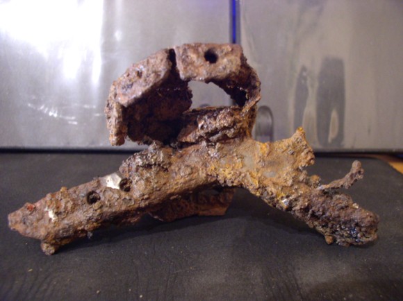 Ich könnte wetten daß ich das Ding schon einmal irgendwo gesehen habe, ich komme nur nicht darauf wo ... das runde Ansatzstück mit der herzförmigen Öffnung kommt mir irgendwie bekannt vor. Würde man es in die (wahrscheinliche) Ausgangsstellung zurückbiegen käme das Loch genau über das abgebrochene Teil.IN GIRUM IMUS NOCTE ET CONSUMIMUR IGNIKommentar