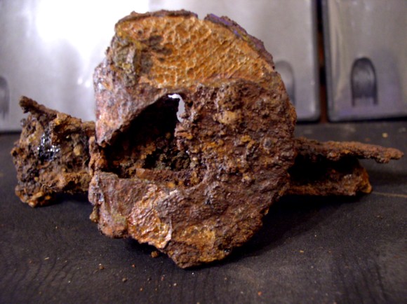 Die heutigen Oberflächenfunde aus dem Wald bei Hösel : das erste ist schätzungsweise ein ziemlich vergammelter Gasmaskenfilter. Nr. 2 lag daneben, das kleine Stück gehörte eigentlich hinten dran, ist aber leider schon beim Transport abgebrochen. Bevor ich jetzt anfange irgendwelchen Müll zu restaurieren würde mich schon interessieren, ob mir jetzt schon jemand sagen kann was das einmal war.