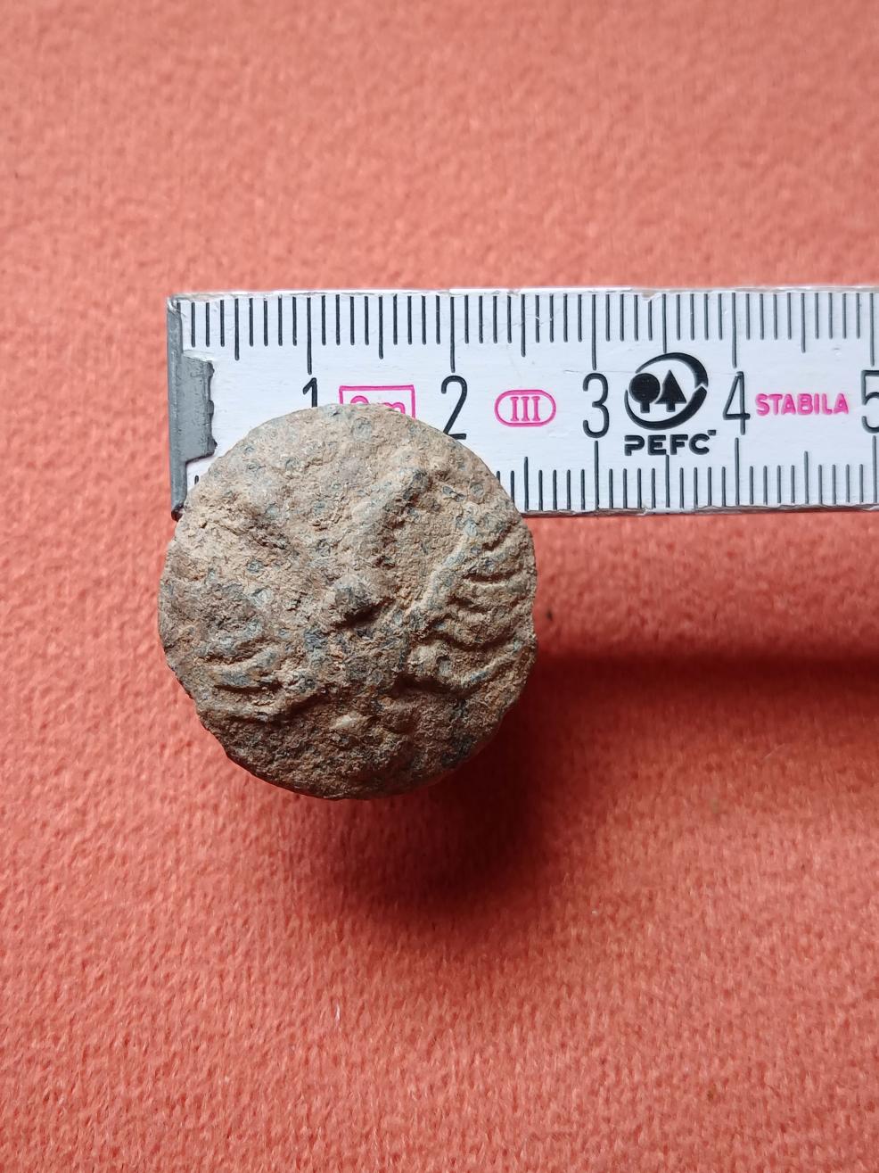 Das ist ein Knopf, vom Trageriemen einer Muskete.