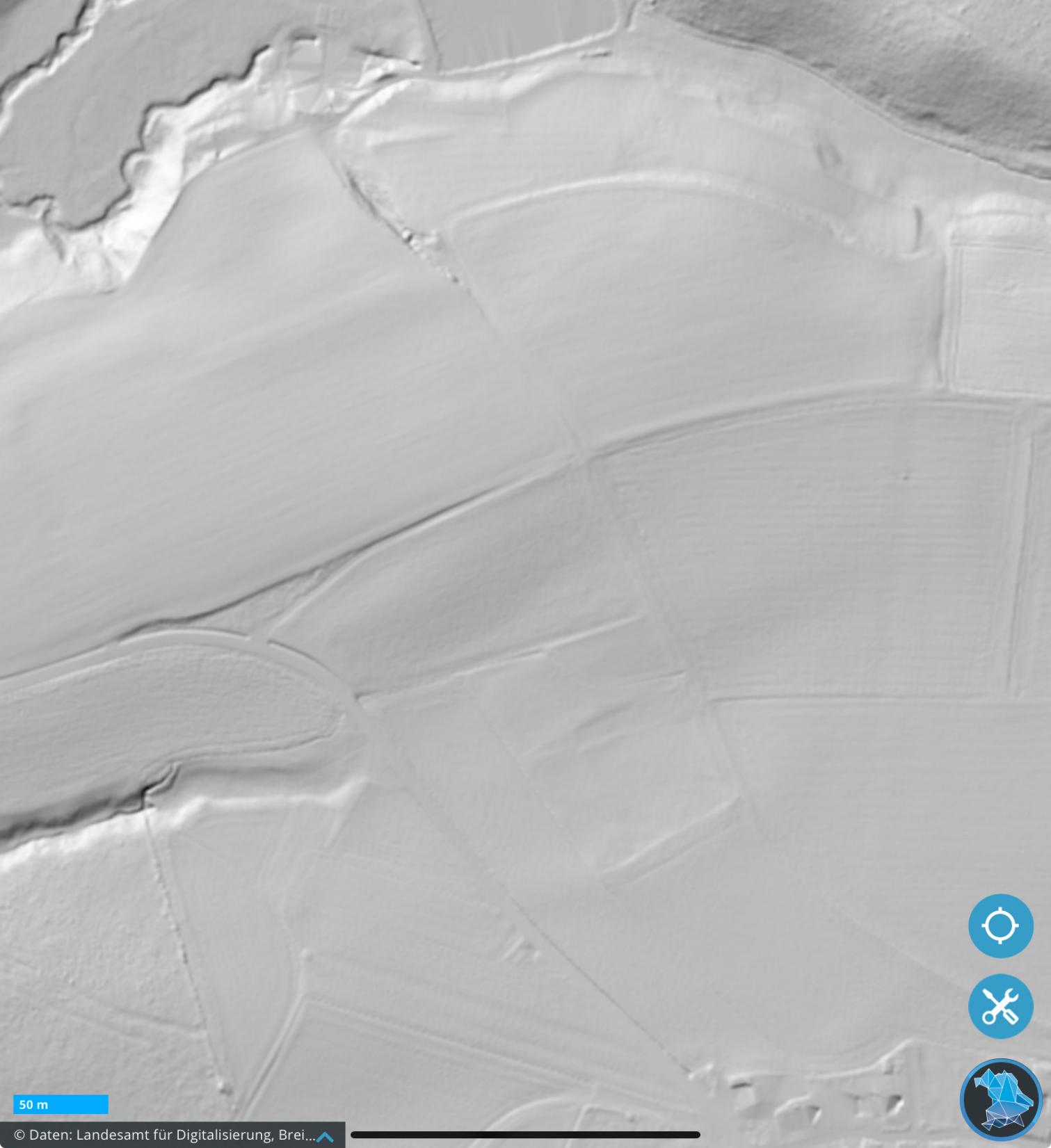 P.S.: Anbei mal ein aktuelles LuBi betreffenden Ackers. Ich meine darauf Spuren von Gebäuden zu erkennen. Auch der Landwirt, mit dem ich in Kontakt stehe, bestätigt, das im Laufe der Jahrzehnte immer wieder Sandsteine (wie von einem Gebäude) an das Tageslicht kommen - und die Urgroßeltern immer wieder betonten, das auf diesem Acker die Burg mal gestanden haben soll. Wir fanden beim Sondeln zahlreiche Nägel, Eisenbeschläge etc. dort vor. Der Landwirt trat auf Grund der Legende auch schon mal an die Denkmalschutzbehörde ran, das Amt zeigte bis dato aber kein Interesse.