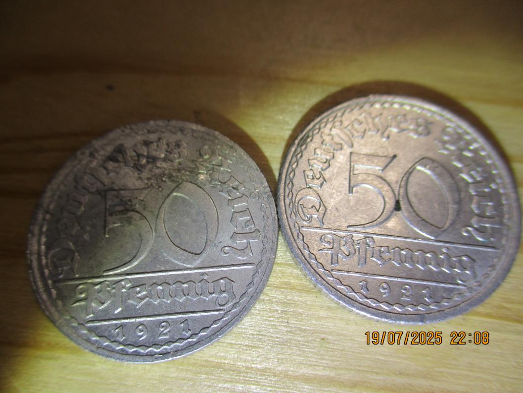 Wer erkennt da noch die letzte Zahl der Datumsangabe? 50 Pfennig Deutsches Reich 192? Ein Wiesenfund in 5cm Tiefe.
