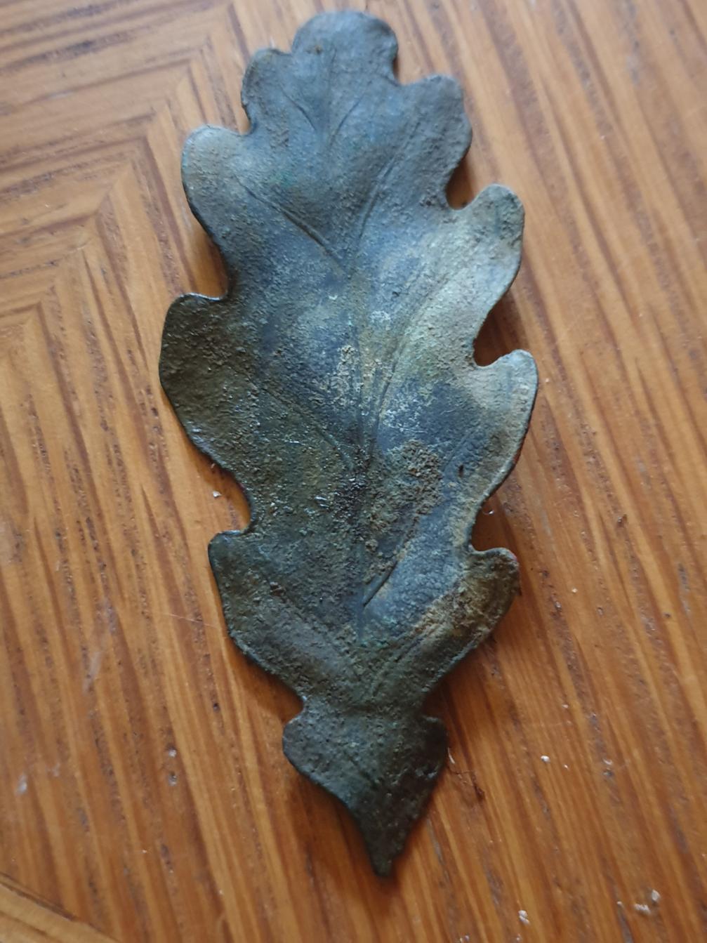 Wiesenfund in 5cm Tiefe. Ein Metallblatt. 7 x 3cm