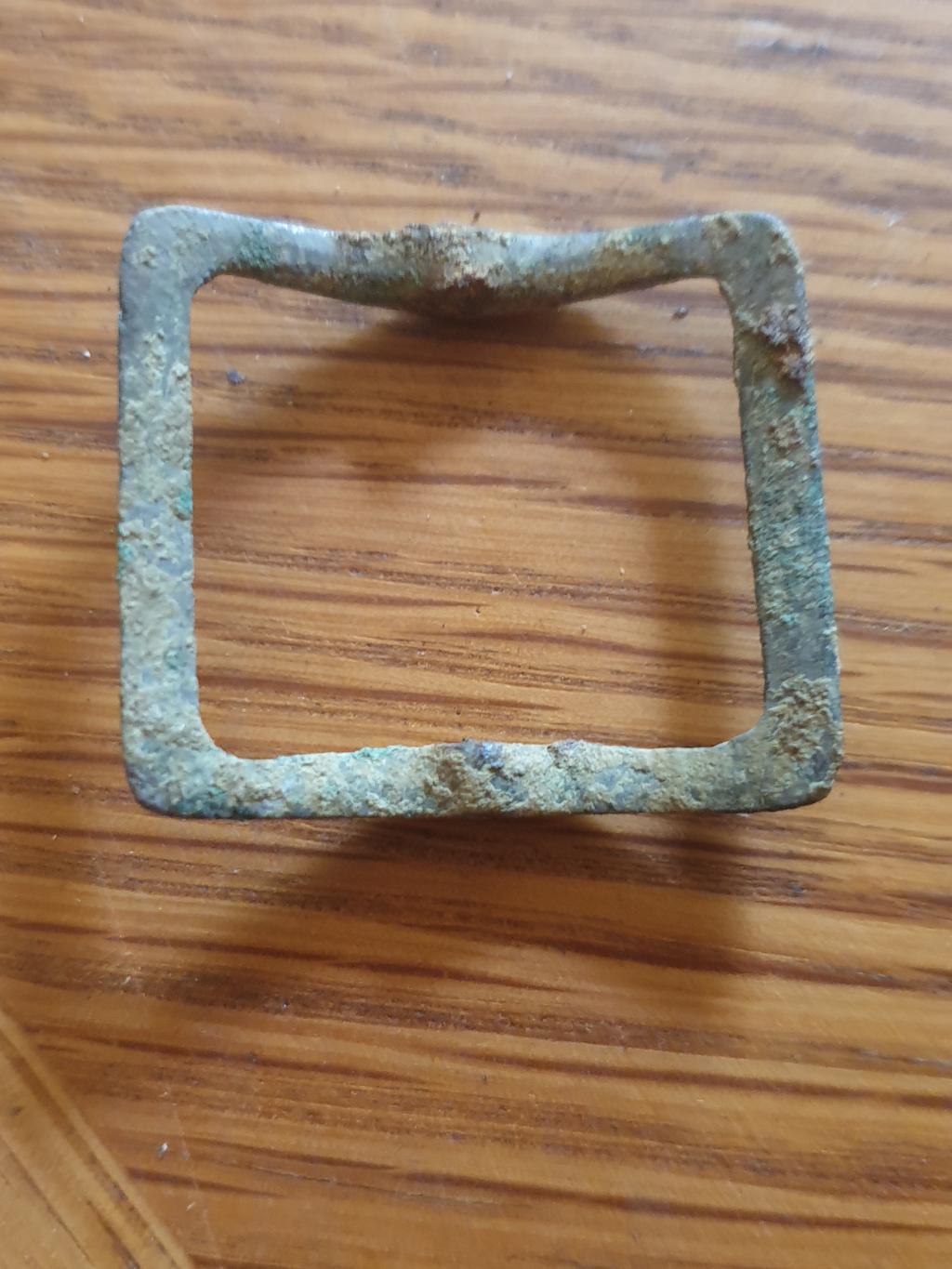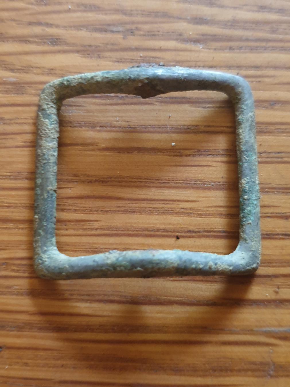 Was war das denn mal? Gürtelschnalle? ein Wiesenfund in 5cm Tiefe. 3,5 x 3cm