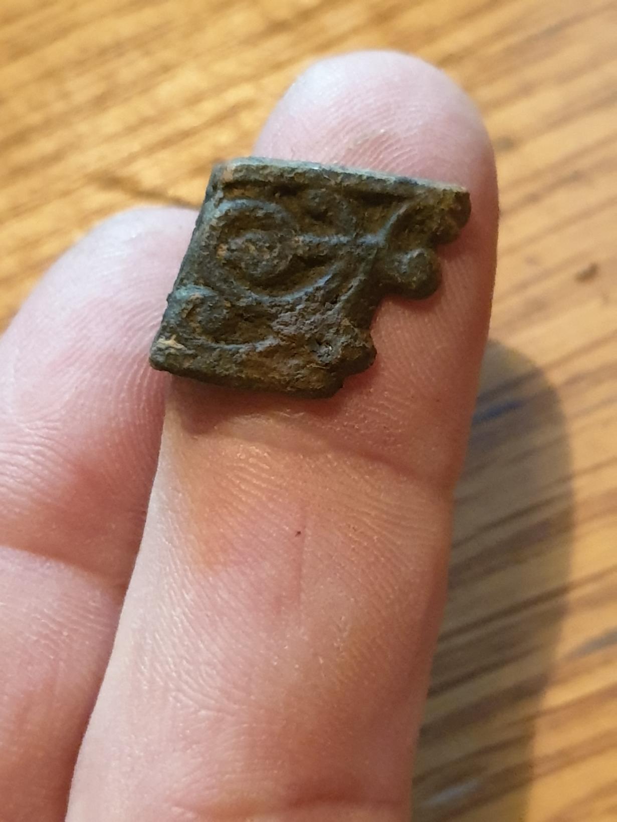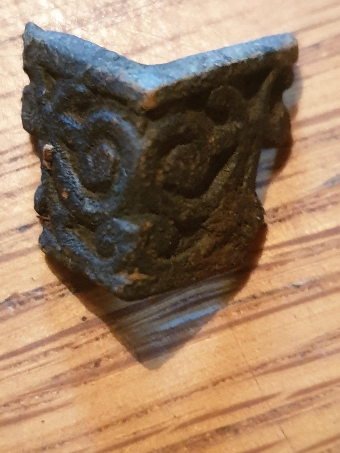 Ein Wiesenfund, Winkelteil mit Verzierungen darauf. 5cm Tief 15x15x15mm