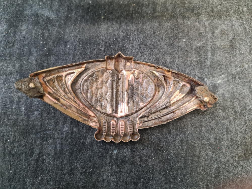 Diese Emblem gefunden,kann aber damit nichts anfangen, Material Messing,scheint aufgeschraubt gewesen zu sein,an den beiden Metallschrauben sind noch Reste von einem Blech, vielleicht kennt wer das Teil