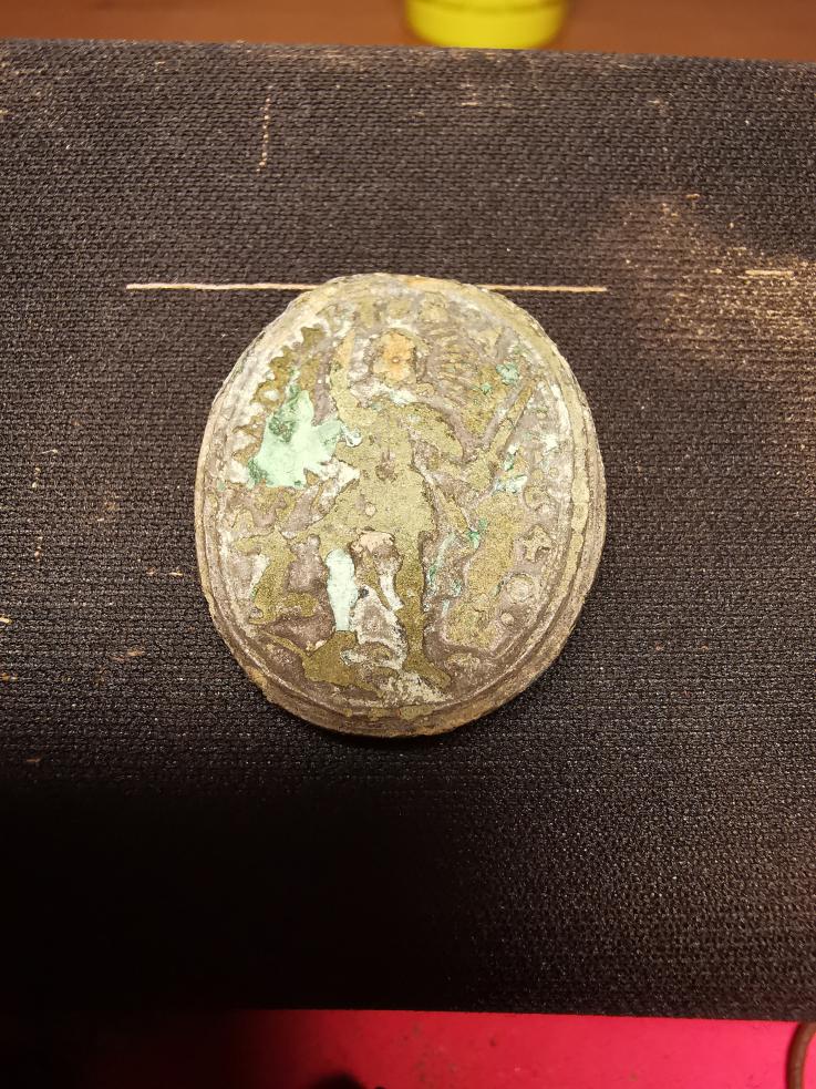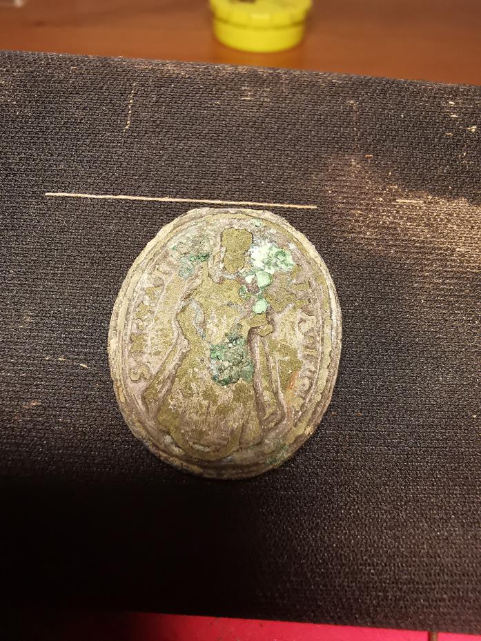 Was könnte das sein? Münze oder Pilgerzeichen (Pilgerzeichen mit Schwert?!)