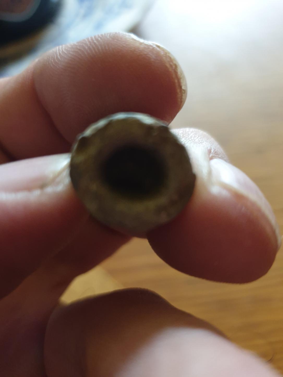 Heute vom Acker, 5 cm Tief mit Programm Coins. 22 mm Lang, 14mm Durchmesser. Müsste ein Bayerisches Podewils-Geschoss sein.