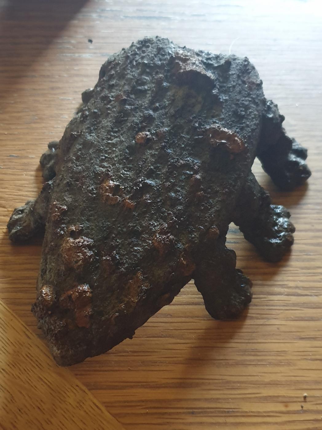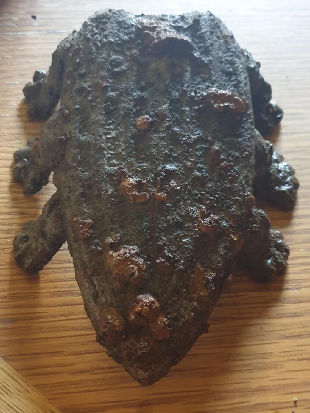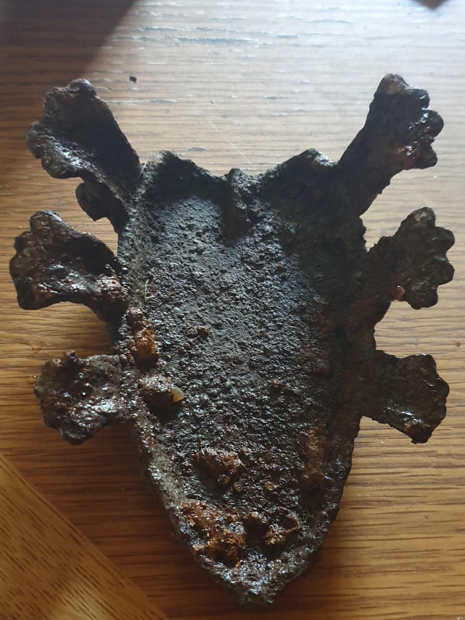 Auf der Wiese fand sich das, 10cm Tief mit Programm Relikte. 14 cm Lang, 12 cm Breit Es steht schräg, vorne am Spitz fast am Boden, hinten 5cm hoch.Stichworte: -😎 1 -