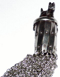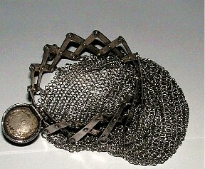 Der Durchmesser des Oberen Rings ist ca offen 5 cm und der Kranz ist 2 cm Hoch. Der ganze Beutel ist 8,5 cm hoch.