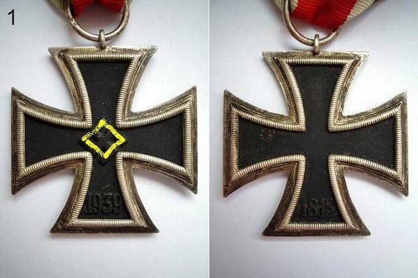 wahrscheinlich weil meine mit nadel sind. eins übrigens mit herstellerstempel "L11" am kreuz an der öse, das andere mit hersteller "50" auf der nadel. beide in recht gutem zustand.
