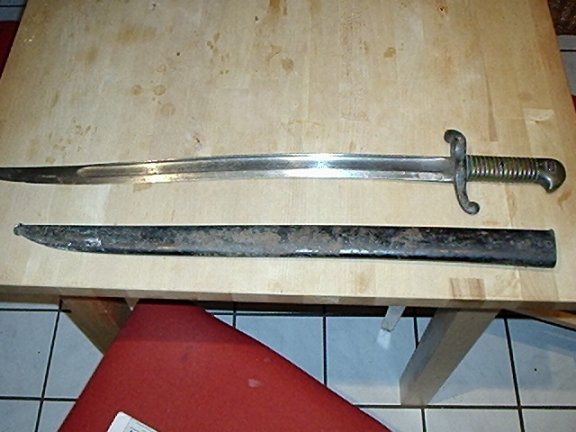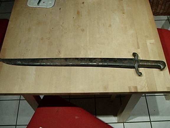 Brauche mal die Hilfe von den Bajonet Spezialisten. Habe heute ein Bajo/Schwert aus einer Mülltonne gezogen (wirklich!).