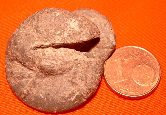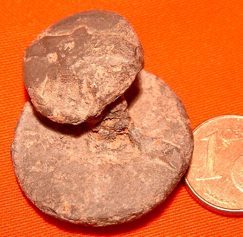 Das Dingens lag auf einem Waldweg in der Nähe einer Burgruine und ehemaligen Siedlung aus dem Mittelalter. Die Vorderseite hat es leider erwischt, sieht aber nach einem Löwen aus, auf der Rückseite vielleicht ein Falke...