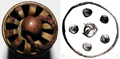 diese Pfeife wurde aus ca. 10 cm Tiefe im Wald (am Waldrand) ausgegraben. Im gleichen Gebiet (200 m Radius) und in gleicher Tiefe wurden auch schon US und Deutsche Patronen aus WK2 sowie Reichspfennige gefunden. Die Pfeife ist wahrscheinlich aus Messing. Sie ist 7,4 cm lang und 2,3 cm im Durchmesser und mit "SIGNAL" und einen Pfeil durch beschriftet. Im Gegensatz zu den meisten mir bekannten Pfeifen hat sie keinen Schlitz in der Röhre, sondern etliche Öffnungen hinten (siehe Bild 2). Im Inneren befindet sich nach dem Mundstück eine Platte mit einer Schraube in der Mitte und 5 Löchern drum herum (ebenfalls auf Bild 2 skizziert). Es ist keine Kugel in der Pfeife und wenn man rein bläst, ertönt kein Pfiff - zumindest kein für das menschliche Ohr hörbarer.