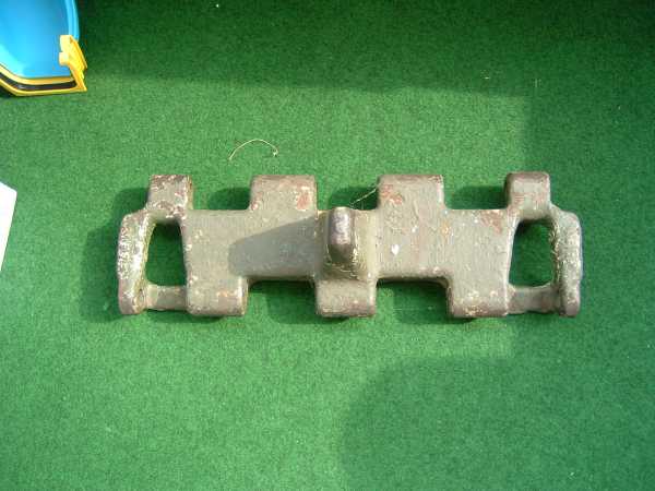 ich würde mich freuen, wenn mir jemand nähere Angaben zu diesem Kettenglied machen könnte, vielleicht anhand der Bezeichnungen die nach dem Strahlen unter dem Dreck und Rost zu Tage traten.