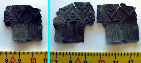 ganz links seht ihr den Fundzustand, da waren beide Plättchen (sind aus Kupfer) übereinander und zusammenhängend.