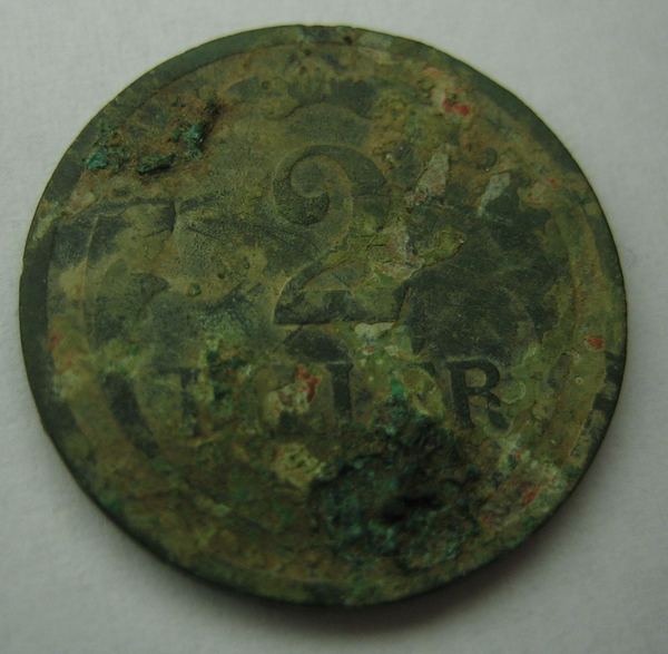 drauf. Bin mir mit dem 2. Y nicht so ganz sicher, ob es nicht doch ein V ist. Auf der Vorderseite ist 2 Piller eingeprägt (auch hier bin ich mir nicht ganz sicher ob es wirklich Piller heissen soll oder nicht etwa Heller).