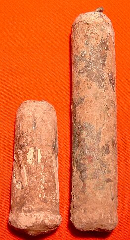Seltsame Form für ein Geschoss, auch der Eisenkern spricht eher dagegen- wie soll man das in einer Kugelzange gießen. Ich würde auf ein Gewicht tippen, mit dem man irgendwas beschwert hat. Oben war mal eine Öse oder andere Befestigung dran, die weggerostet ist.