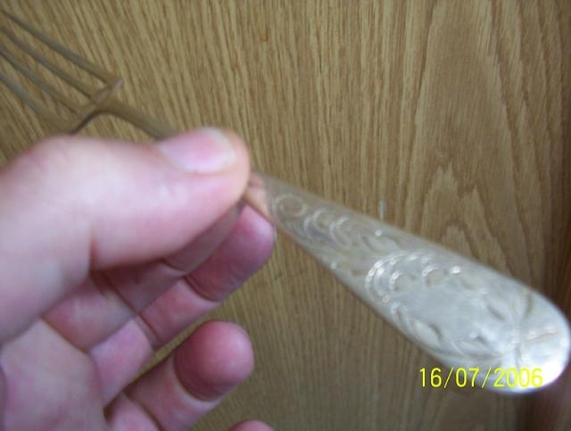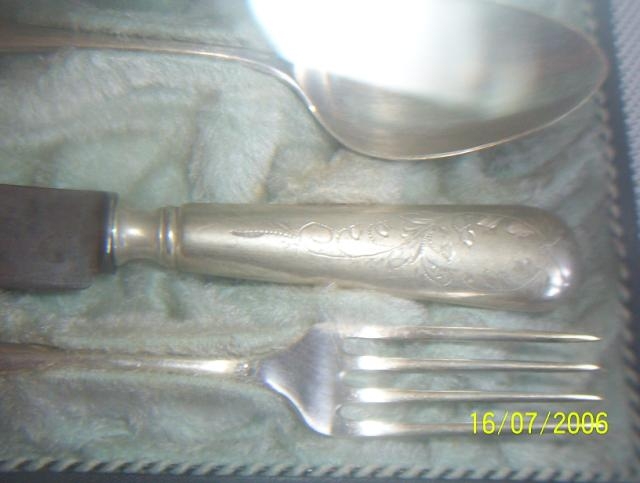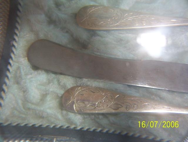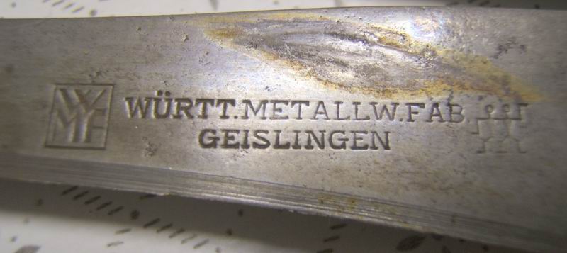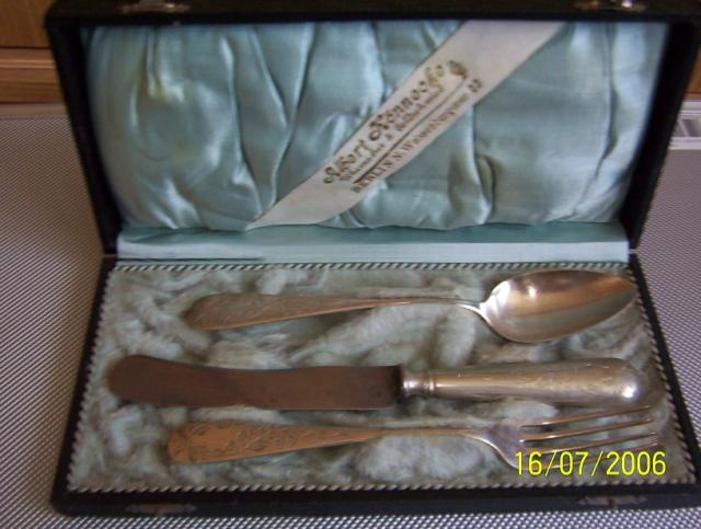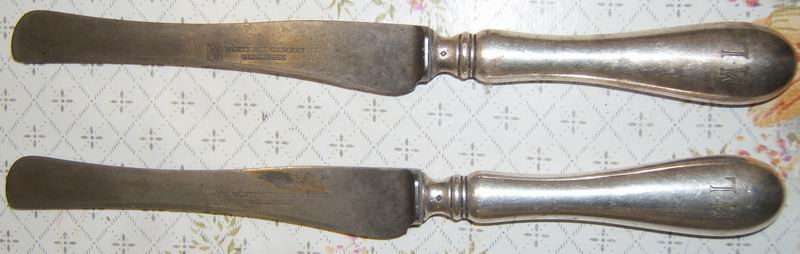 hier habe ich dieses Essbesteck Set,kann ich aber das genaue Alter nicht einschätzen.Material scheint Alpaka zu sein (kein Stempel).Sieht so aus wie eine besondere Anfertigung zu sein.... um die 30er Jahre???