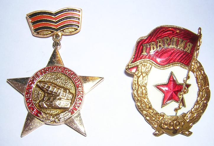 Der Orden links daneben (wohl irgendwas mit Raketen-Lastwagen) fühlt sich dagegen an wie Plastik und ist extrem leicht, wirkt eben sehr "billig".