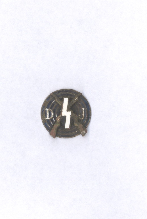 Dein Abzeichen ist ein Deutsches Jungvolk Schießabzeichen.Hersteller:M1/128 Eugen Schmidhäussler,Pforzheim