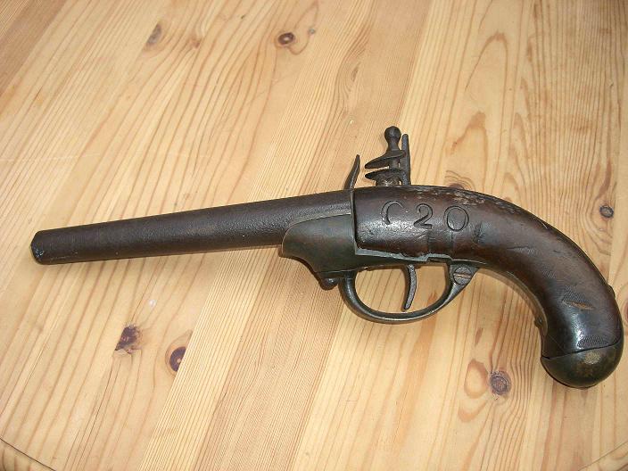 An der einen Seite steht groß C 20, am Griff JUILIET 1732, und da ist ne Stanzung vorm Abzug mit einer Krone und einem L unter?