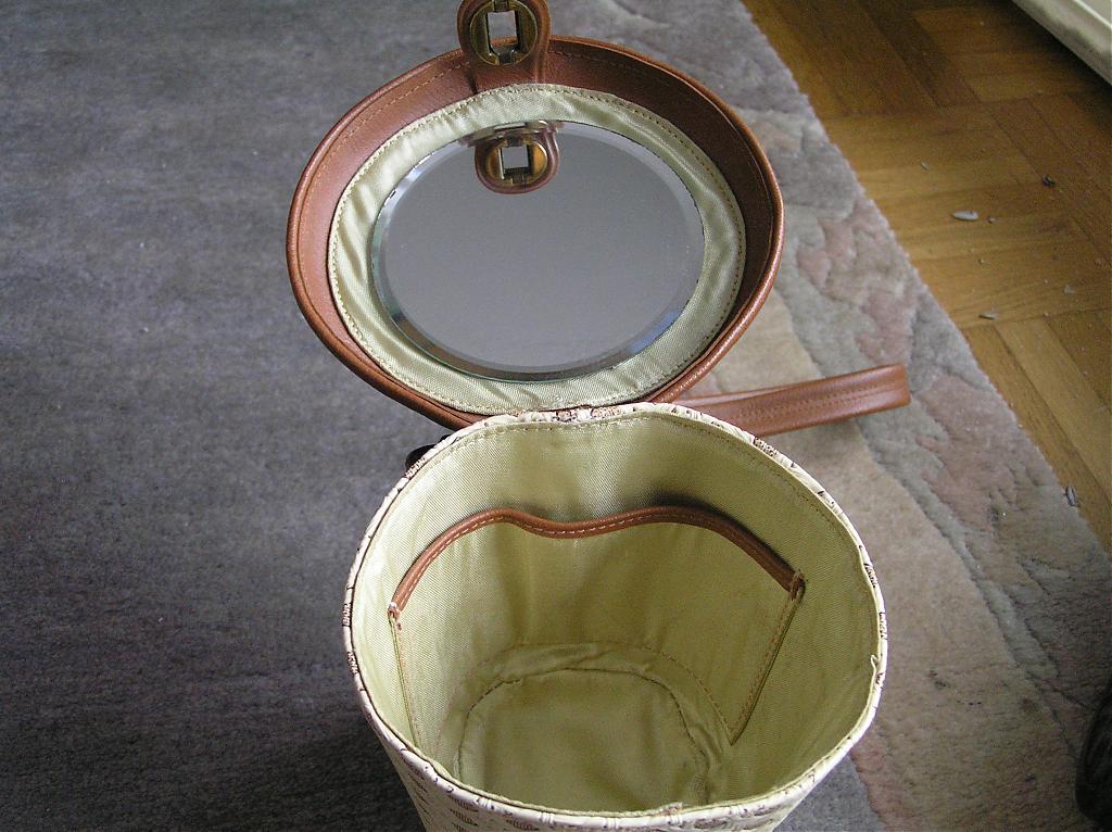 In der Mitte ist ein Spiegel müsste also eine Kosmetiktasche sein. Nur keine Ahnung wie alt das Teil ist.