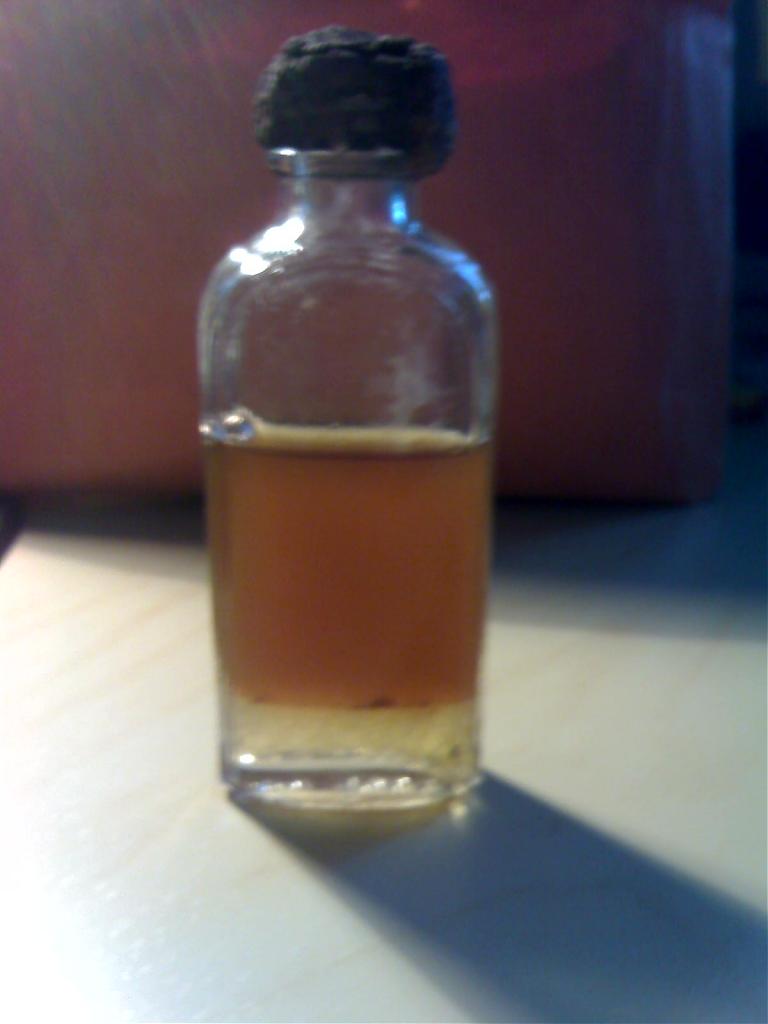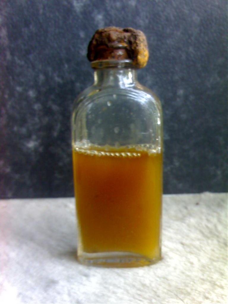Wenn da öl drinnen wäre, würde der Deckel vermutlich nicht so fest sitzen. Auf keinen Fall an unbekannten Flüssigkeiten riechen, wer weiß, was das ist.Mich würde wirklich interessieren was der Inhalt der Flasche ist, es müssen zwei verschiedene Flüßigkeiten sein, die sich im Ruhezustand voneinander trennen, ähnlich wie Essig und Öl.