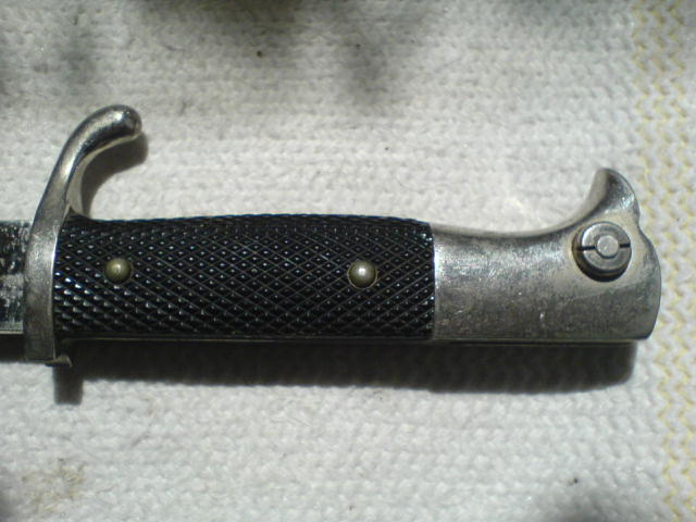 Ausgehbajonett KS 98 kurz mit Kunststoffgriffschalen. Defintiv 2. WK. Alle Ausgehbajonette waren ungeschliffen, da sie ja eigentlich nur zur Dekoration dienen sollten! Ich würde es auch so lassen -> unbefummelt!