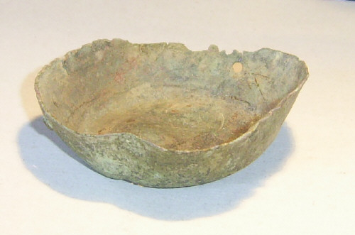 Habe in der Nähe einer Altbergbauhalde diese Kupferschale gefunden. Durchm. ca. 8cm und drei Löcher im Rand verteilt. Was könnte das sein?