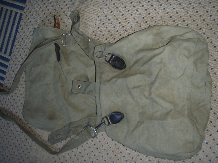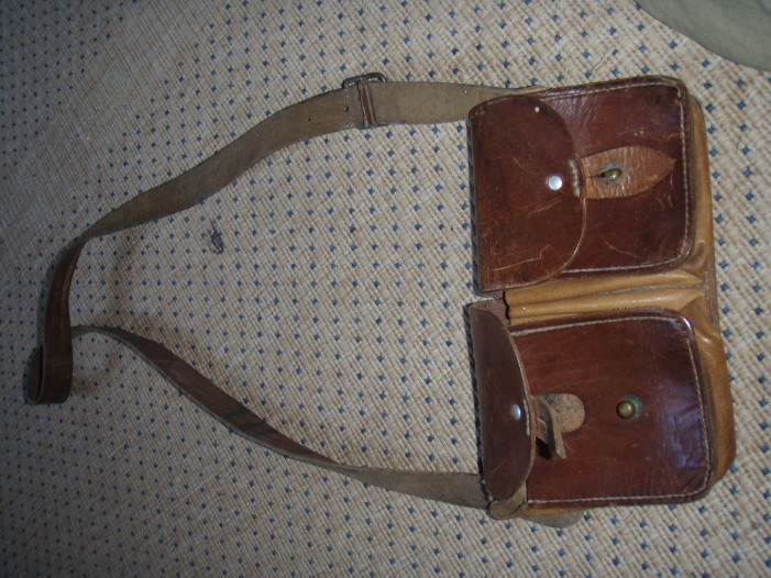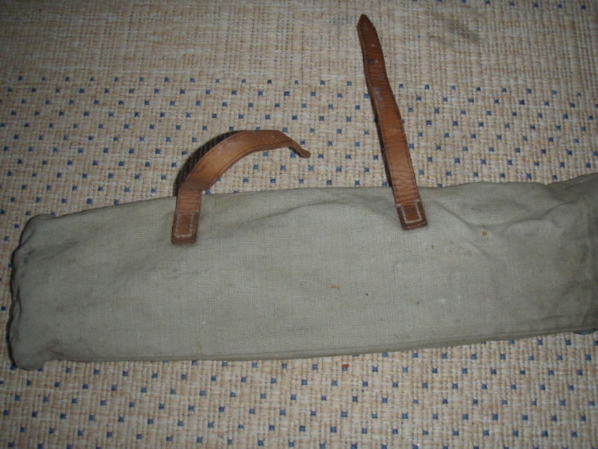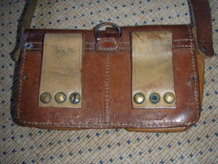 . Das Ganze befand sich in der Tasche, Maße in etwa 12 x 40 cm, gestempelt mit BAIII. Die Riemen sind aus Leder, die Knöpfe aus Zink o.ä. Könnte militärischem Ursprungs sein....Lasst mal hören!