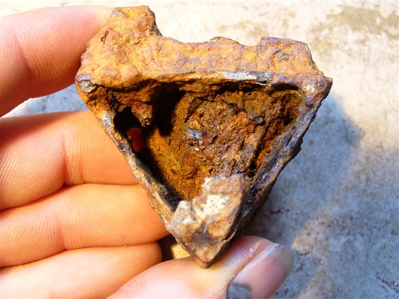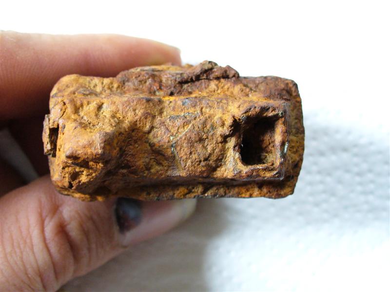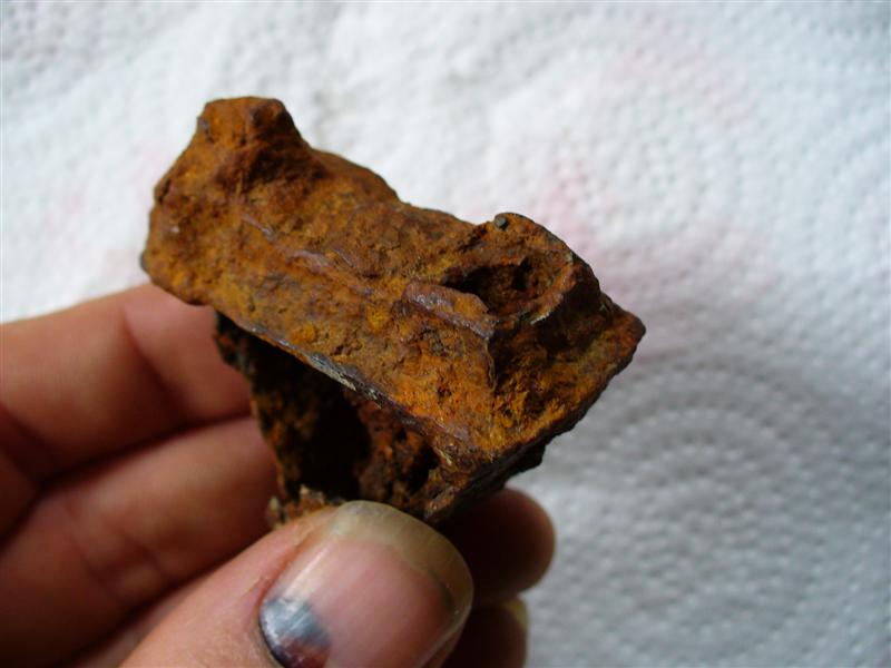 Heute war ich nach längerer Pause wiedermal unterwegs um ein wenig "Altmetall" aus der Erde zu holen.Leider war der Boden auf dem frisch abgeernteten Acker ziemlich fest.Nach einer Stunde kam dann dieses dreieckige Dingens zum vorschein das mich sehr stark an ein Schloss erinnert zum vorschein.