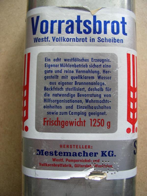 Habe eine Dose mit Vorratsbrot gefunden ( aufm Dachboden ) nun würde ich gerne wissen aus welchem Jahr dieses Brot ist?!? Ich habe schon versucht über das Internet etwas herauszubekommen aber ich finde absolut nicht das richtige!!